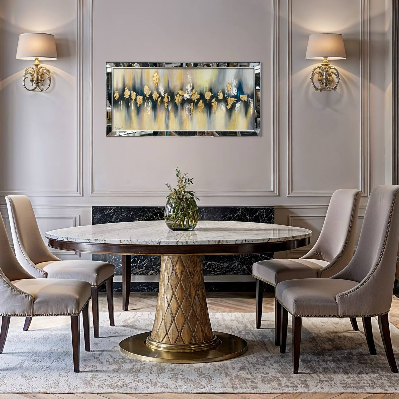 Para realzar cada pintura, ofrecemos marcos espejados exclusivos que aportan un toque de elegancia y modernidad, creando un equilibrio perfecto entre la artesanía y el diseño sofisticado. Estos marcos reflejan la luz y amplifican la presencia de la obra, convirtiendo cada cuadro en una pieza central que transforma cualquier espacio.